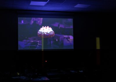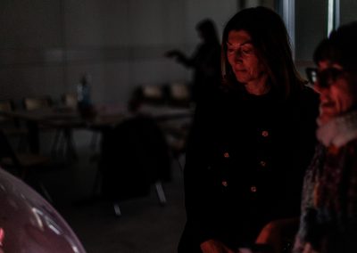 Le porte che li dividevano dalla sala erano chiuse, poi una volta dentro, il buio. pneumOS respirava, suonava, generava luce: un incontro silenzioso, per lasciare il tempo di fare conoscenza. Perchè poi un po’ quello era il tema del pomeriggio: incontrarsi, fare conoscenza.