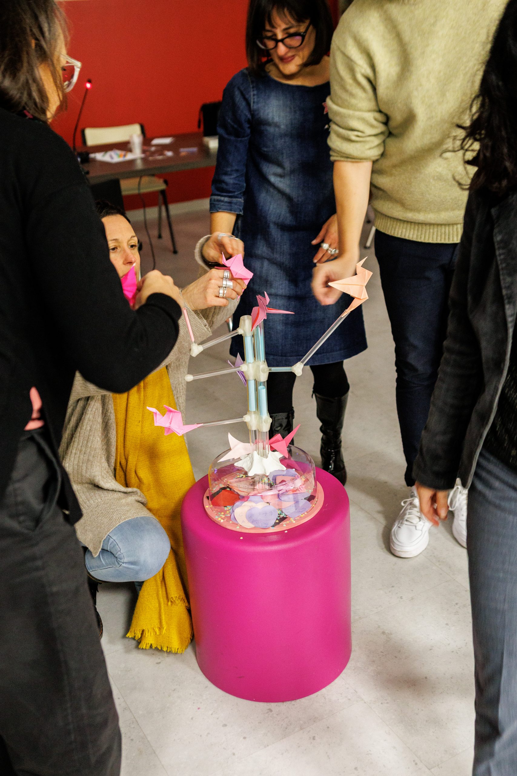Ecco perchè l’output che abbiamo proposto è stato quello di costruire un albero, un pezzo per tavolo: il terreno, affidato al tavolo della pubblica amministrazione, tronco e rami ad artisti e creativi, un laboratorio del sensibile che si dirama. Infine gli uccellini, posati su rami e terreno, a ricordarci che l’educazione è necessaria per diffondere i semi che gettiamo.